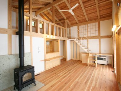 LDKは多くの人と団らんできる大空間の中心にある薪ストーブが暖かく出迎えてくれます。